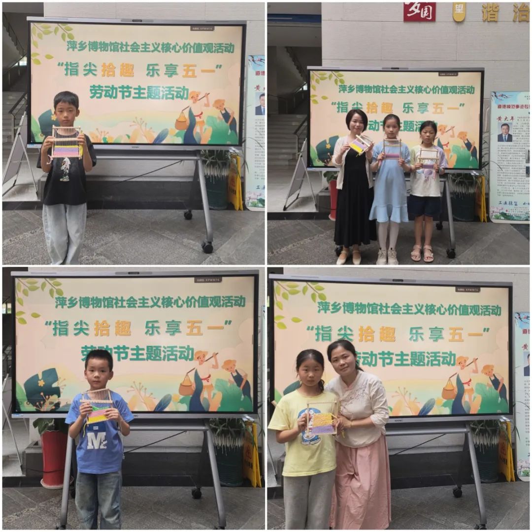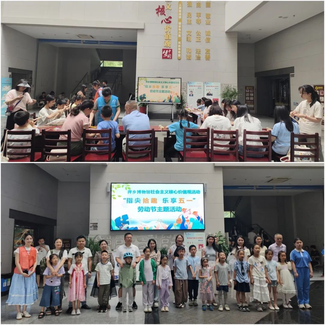 在萍乡博物馆主馆,观众化身“劳动小能手”,积极参与五一活动的手工制作环节,体验竹编、传统织布等技艺。从经纬交织到竹条翻飞,参与者在一编一织中触摸千年农耕文明的温度,感悟“劳动最光荣”的质朴真谛。